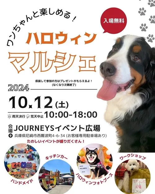 犬用グッズなどのマルシェをはじめ、愛犬と参加できる仮装コンテストや抽選会など一緒に楽しめるイベントが盛りだくさんなので、ぜひ愛犬連れて参加してみてはいかがでしょうか♪