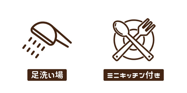 | 設備 サービス | ![]() ![]() ※足洗い場は冬季使用不可 ※滞在中はペットの一時預かりが無料 |